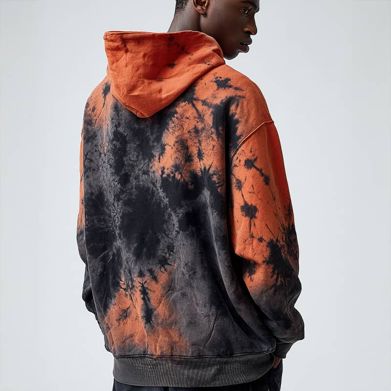 This custom hoodie is born from the concept of “the fire within.” The bold interplay of burnt orange and deep black symbolizes inner ignition — a flame sparked not by others, but from the core of one’s being. The chaotic tie-dye resembles smoke and ash, while the brighter bursts represent moments when inner strength breaks through darkness.