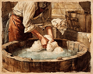 Soften and remove impurities by washing at 60–90°C for 5-30 minutes, with detergent and softener. Ideal for dark fabrics or as pre-treatment.