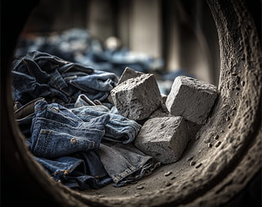 Create natural fading using pumice stones for 30–90 minutes with low water levels. Perfect for achieving a retro, worn look on fabrics.