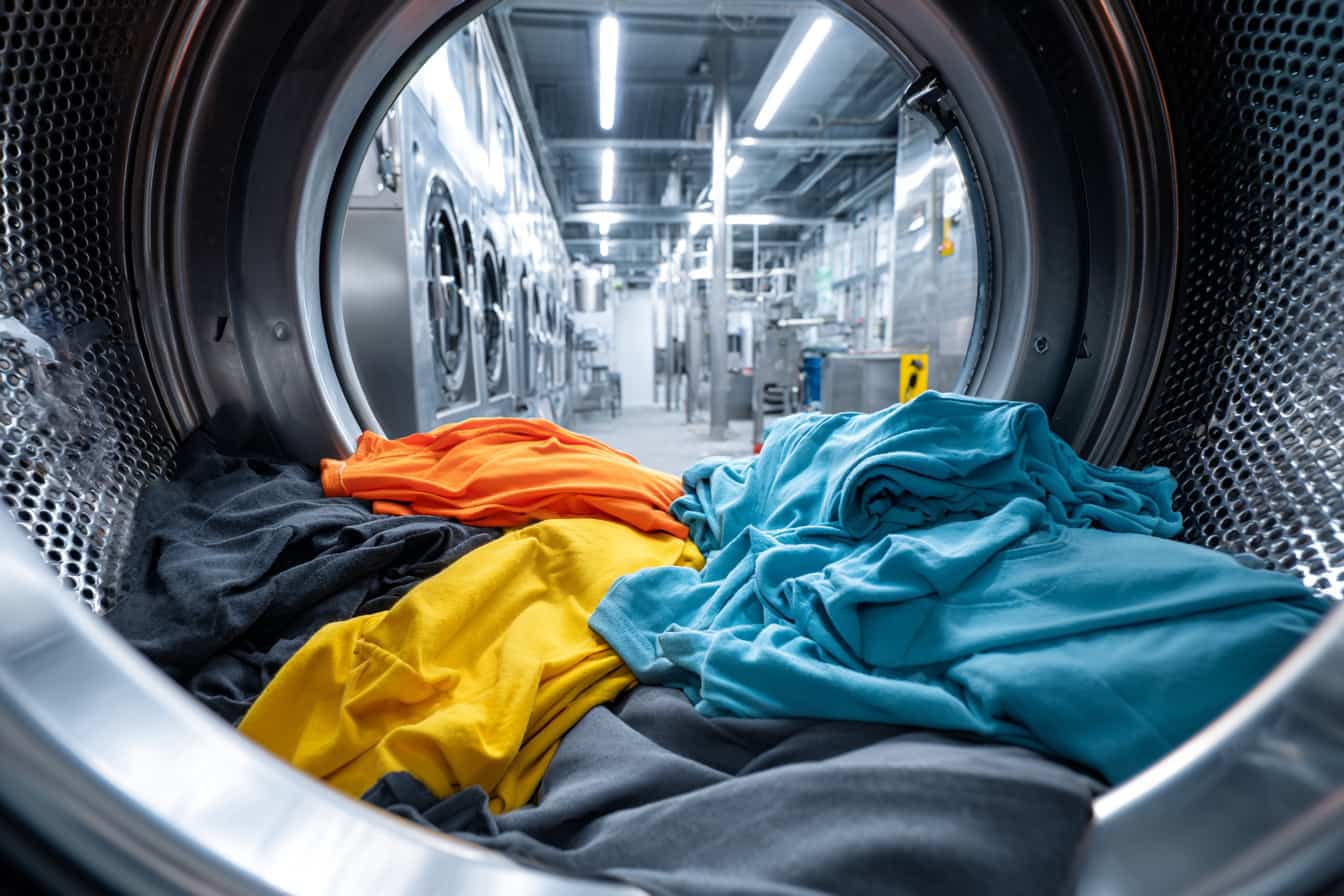 Biodegradable detergents, oxidants, and softeners, like hydrogen peroxide, are used to minimize environmental impact and protect worker health.