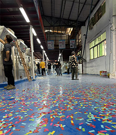 sandblasting, cat whisker, stone washing and so on. The self-built
