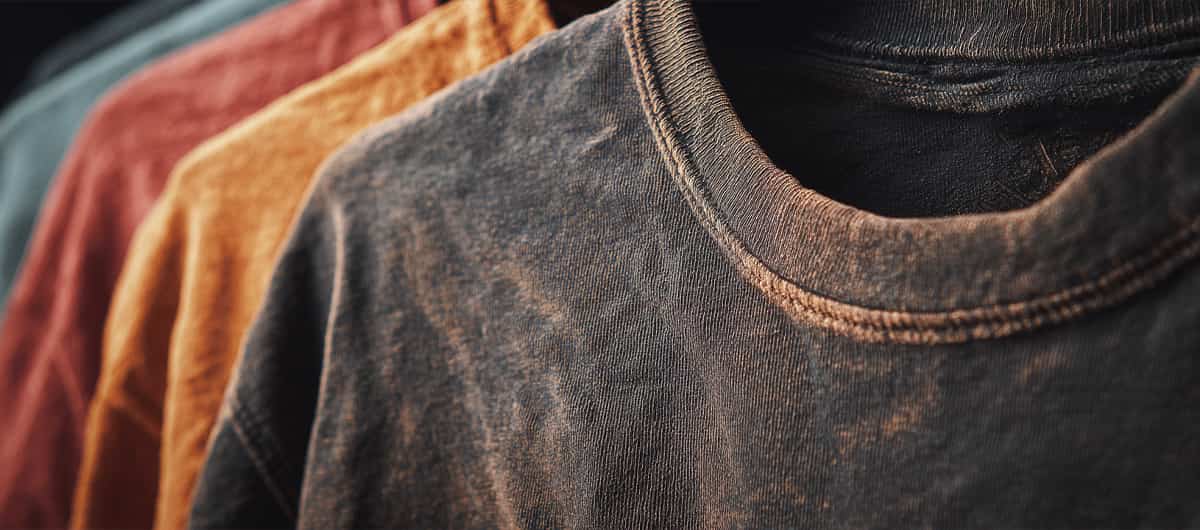 for vintage-wash T-shirts and sweatshirts typically involves garment-dyeing