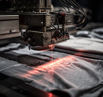 A dry technology process that changes denim color without using water, ideal for achieving light-colored, aged effects.